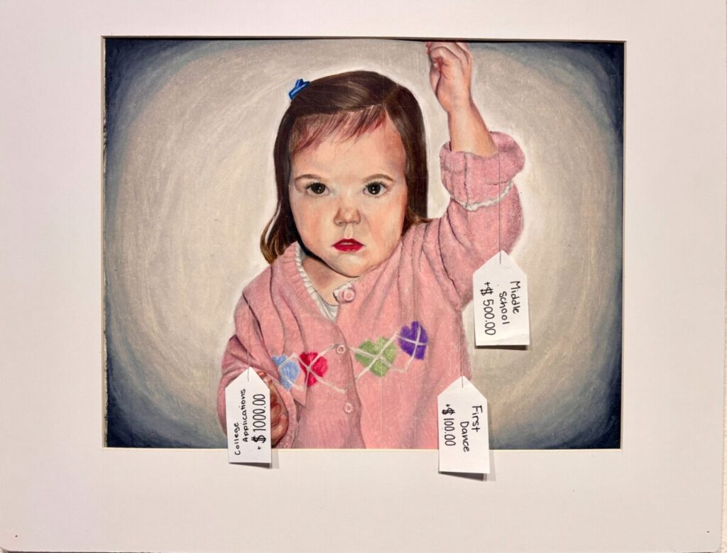 Students earned top recognition at the Gold Key level. Analiese Bergmans received two Gold Keys for her drawings The Cost of Growing Up and Raw, while Eva Warner earned a Gold Key for her photography piece Grand Tetons. Gabrielle Savelli, Emmeline DeMuth and outside submission Joy Zhao also received Gold Keys, demonstrating the strength of NCHS artists across drawing and photography, as well as their ability to stand out in highly competitive categories.