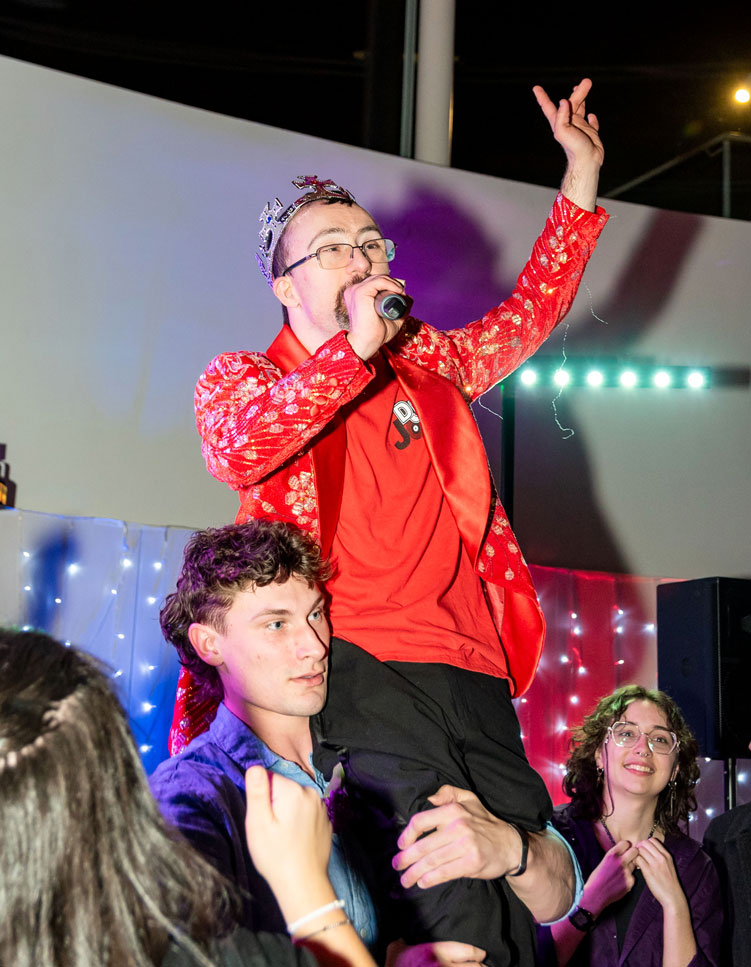 After the red carpet, guests enter the dance floor. “It has food, cotton candy machines, photo booths, and, my favorite, DJ Joe,” said Brooke. “At the end of the night, you get the honor to crown your guest as prom king or queen, which is so special.”