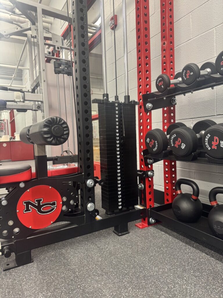 According to Coach Miska, the fitness center now features five new strength training machines, including heavy-duty cable-mounted row and pulldown machines, upgraded dumbbells, and brand-new racks from commercial equipment supplier Sorinex. “The pulldown and row machines we’re getting now go up to 300 pounds rather than 200,” he said. “This can help stronger athletes reach their full potential.”